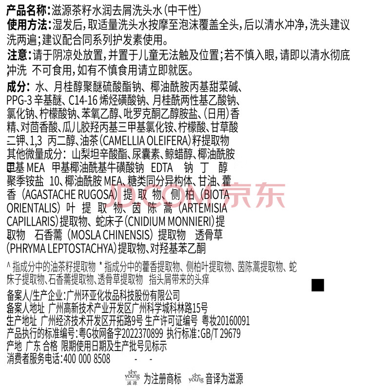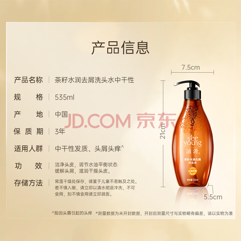 商品相册:滋源茶籽水润去屑洗发水男女士洗头水保湿润泽轻盈无硅油535ml第