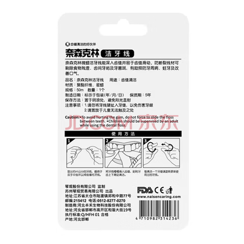 商品相册:奈森克林 洁净洁牙线 便携牙签线剔牙线口腔齿缝清洁护理 50m*1卡第
