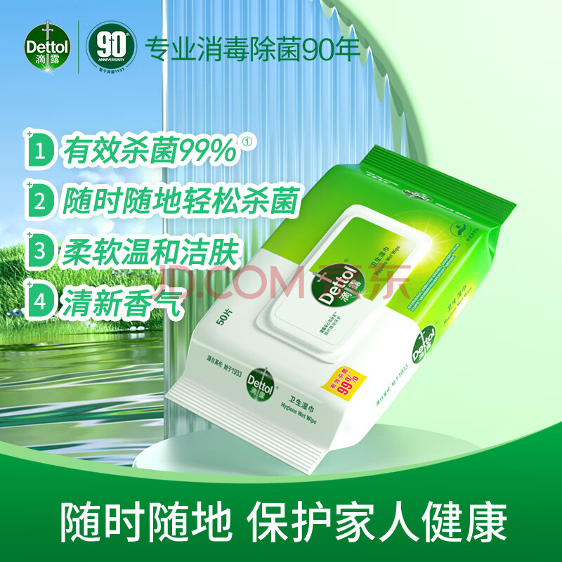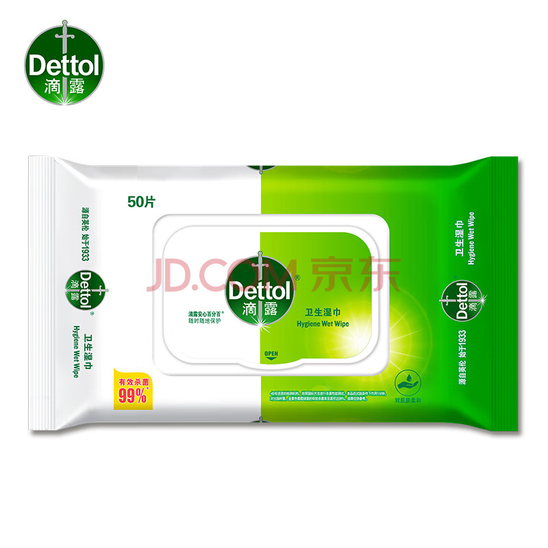 商品相册:滴露(Dettol)消毒湿巾50片湿纸巾非酒精湿巾 厨房湿巾 出行消毒便携第
