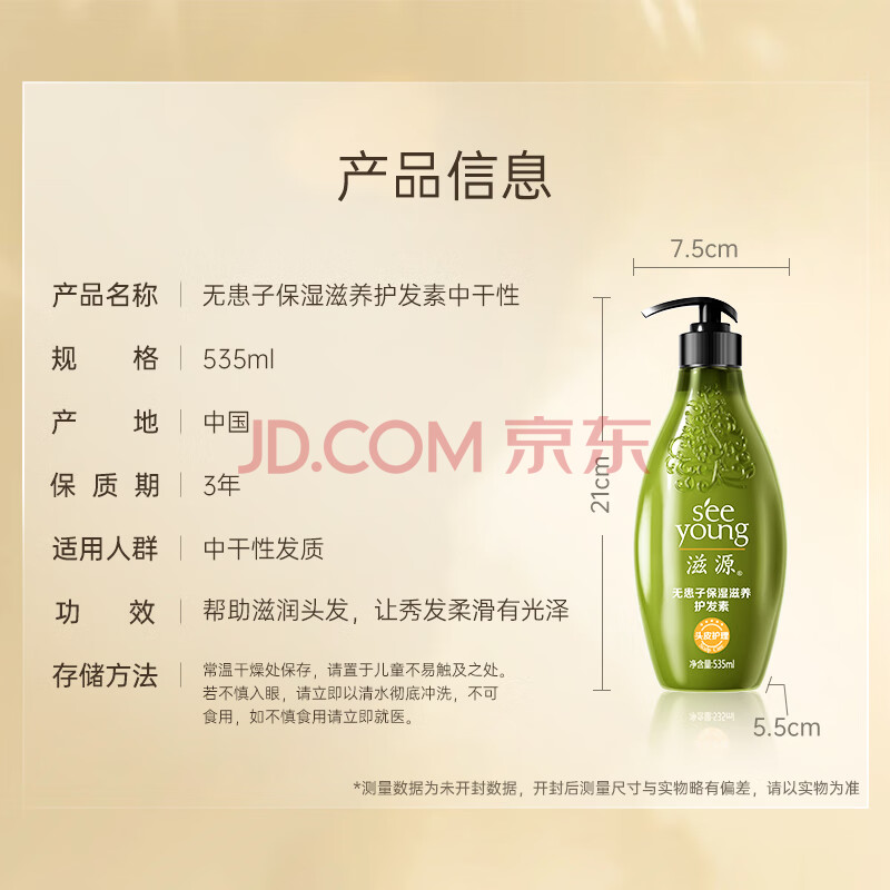 商品相册:滋源无患子保湿滋养护发素无硅油润养柔顺焕亮男女润发乳中干性535ml第