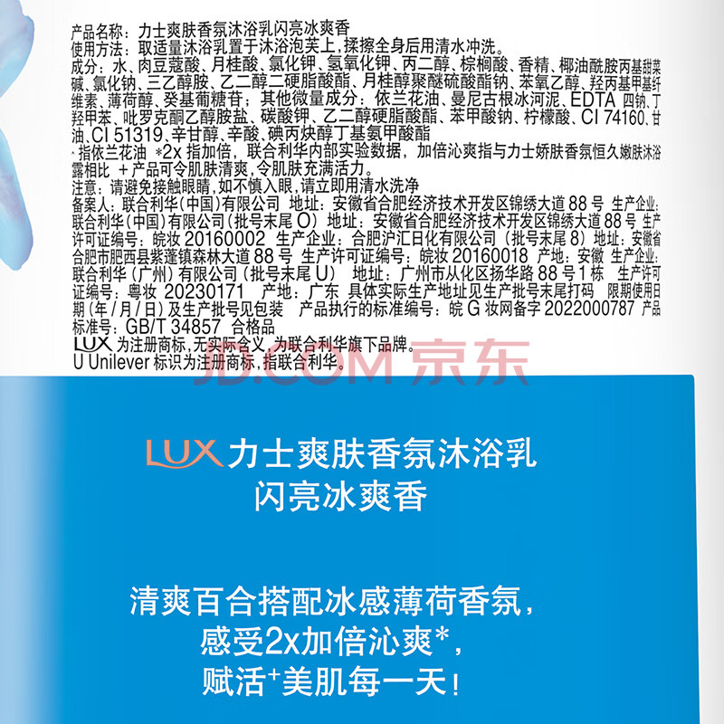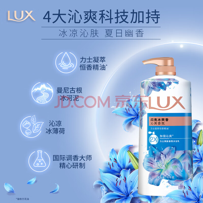 商品相册:力士(LUX)(LUX)沐浴露 闪亮冰爽 沁爽香氛 爽肤香氛沐浴乳1000g留香第1张/共7