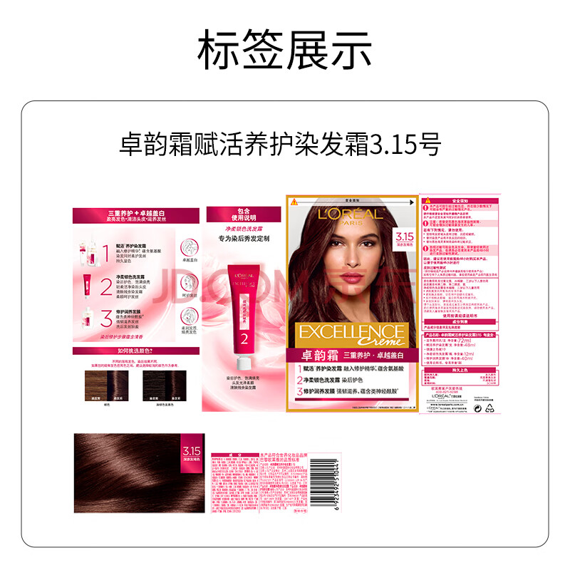 商品相册:欧莱雅卓韵霜护发染发霜#3.15(深赤灰褐色)遮白发 赠奇焕精油发膜7ml第