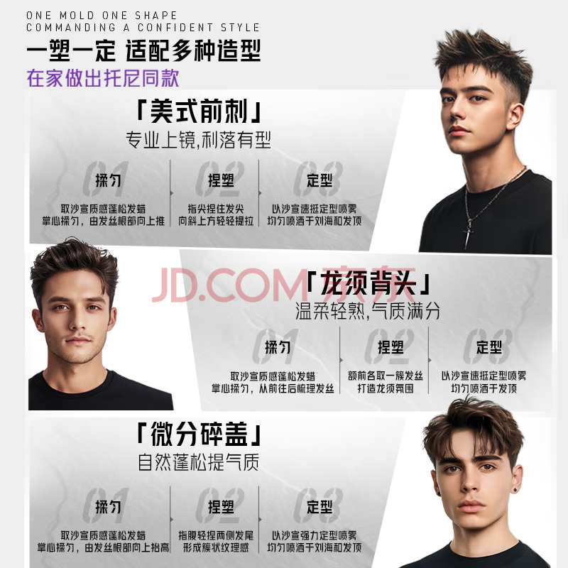商品相册:沙宣质感型蓬松发蜡50g发泥发胶塑形清爽不粘腻湿发可用纹理定型男女第