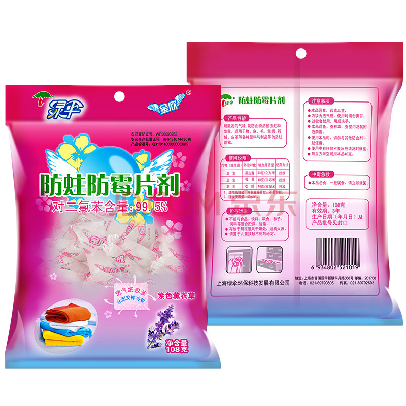 商品相册:绿伞 防蛀防霉片剂 薰衣草香 防蛀防霉剂 室内防虫驱虫防霉108g第
