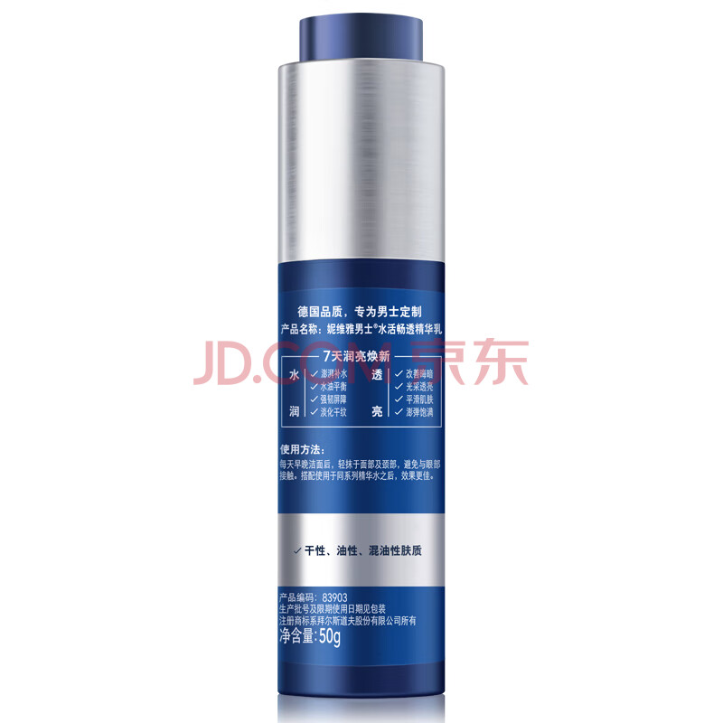 商品相册:妮维雅(NIVEA)男士【水润保湿】补水保湿水活畅透精华乳50g 护肤品 生日礼物第