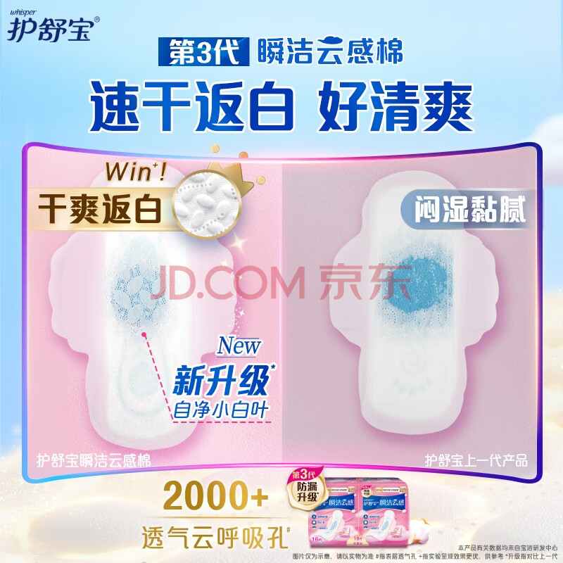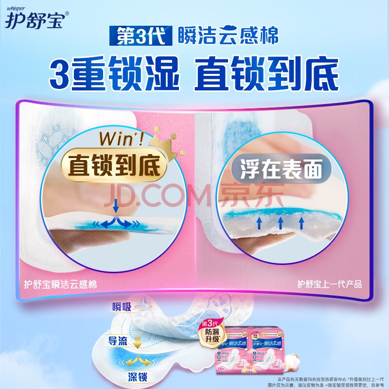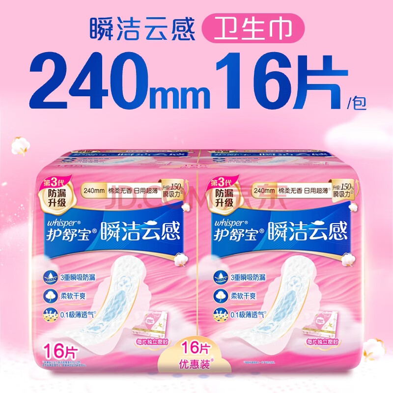 商品相册:护舒宝革新瞬洁云感棉卫生巾日用240mm16片姨妈巾试用京东自营官方旗舰第