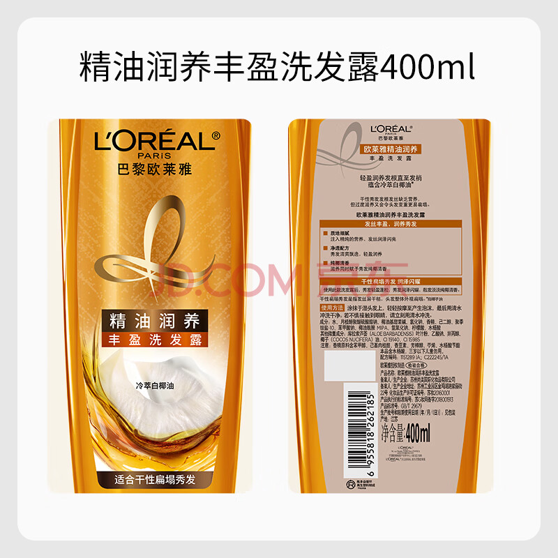 商品相册:欧莱雅精油润养洗发水丰盈柔顺无硅油洗发露400ml(新老包装随机发货)第