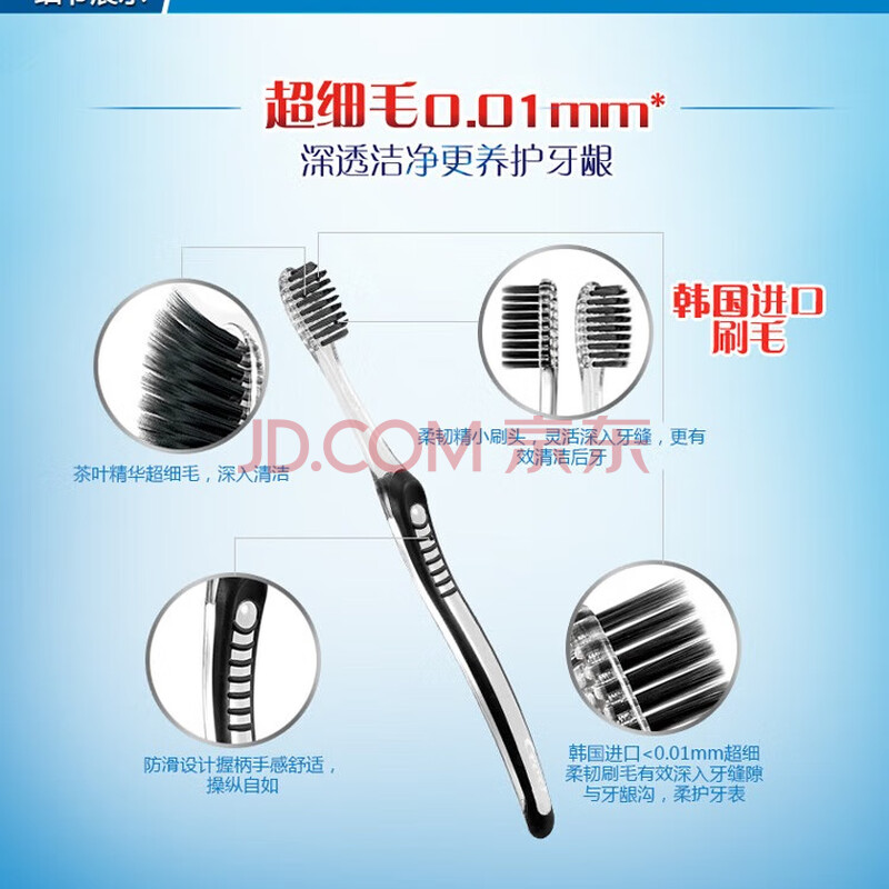 商品相册:佳洁士炭丝护龈成人牙刷软毛超细柔韧黑茶深洁2支新旧包装颜色随机发货第