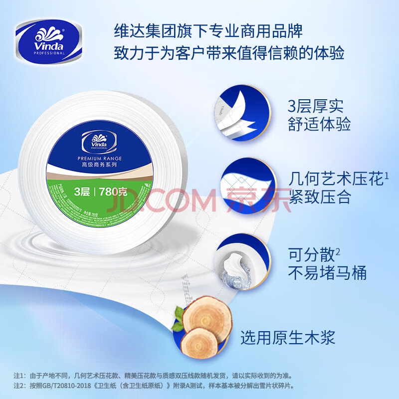 商品相册:维达有芯大卷纸3层780克*12卷 大盘纸商场酒店卫生间整箱VS4035第