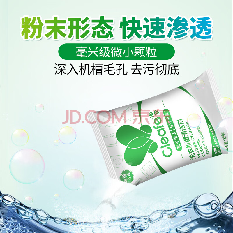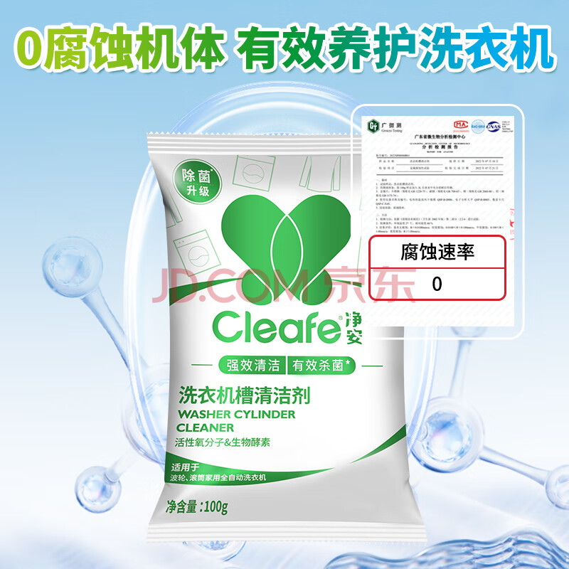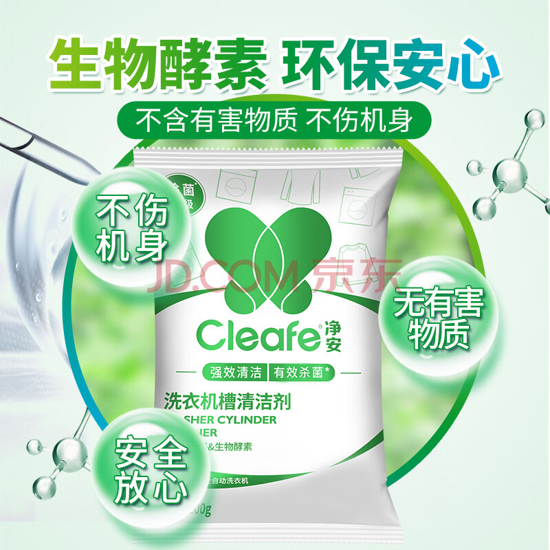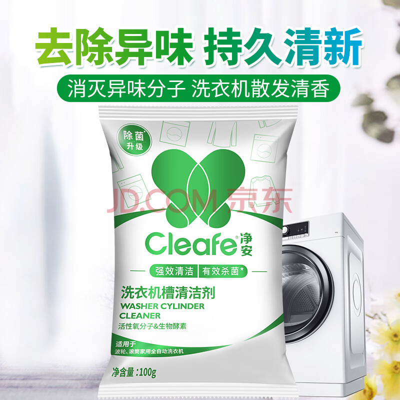 商品相册:净安(Cleafe)洗衣机清洗剂100g*3包滚筒波轮洗衣机清洁除菌除垢去异味爆氧粉第