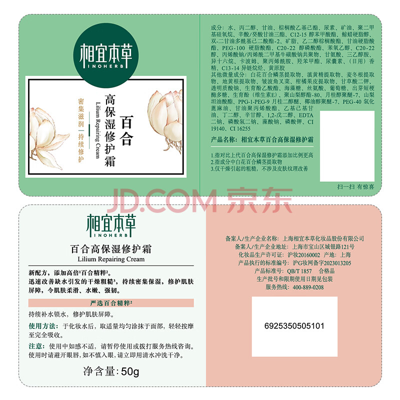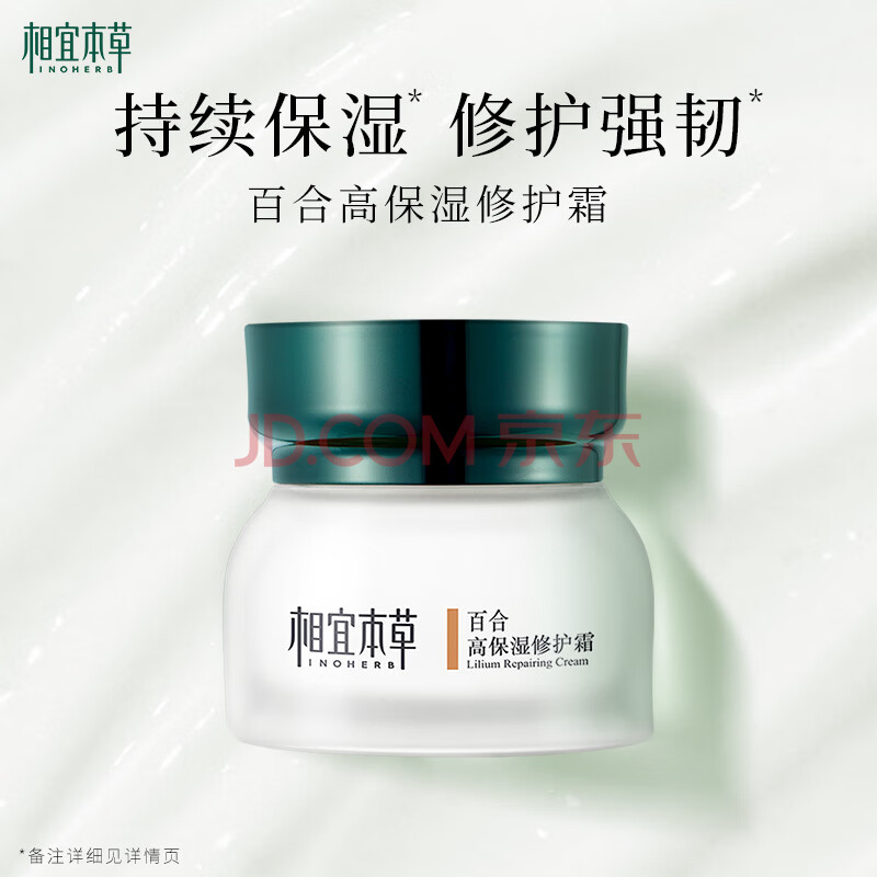 商品相册:相宜本草百合高保湿修护霜面霜50g 保湿改善干燥粗糙护肤品第
