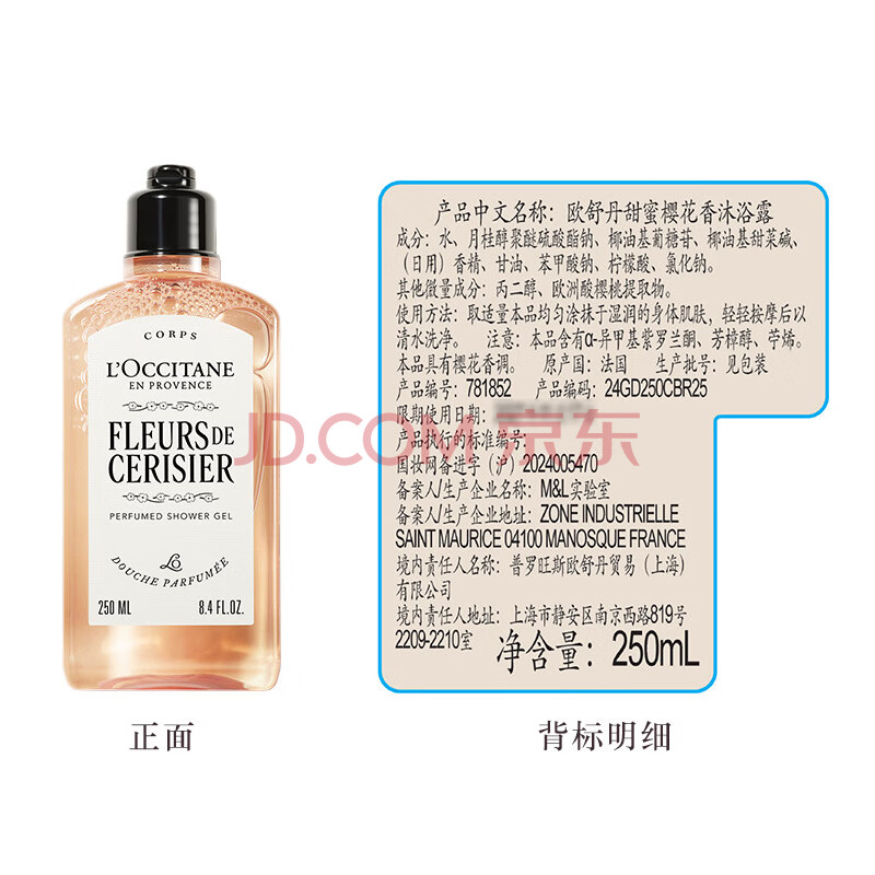 商品相册:欧舒丹樱花香氛沐浴露250ML礼盒清洁保湿清爽持久留香生日礼物伴手礼女第