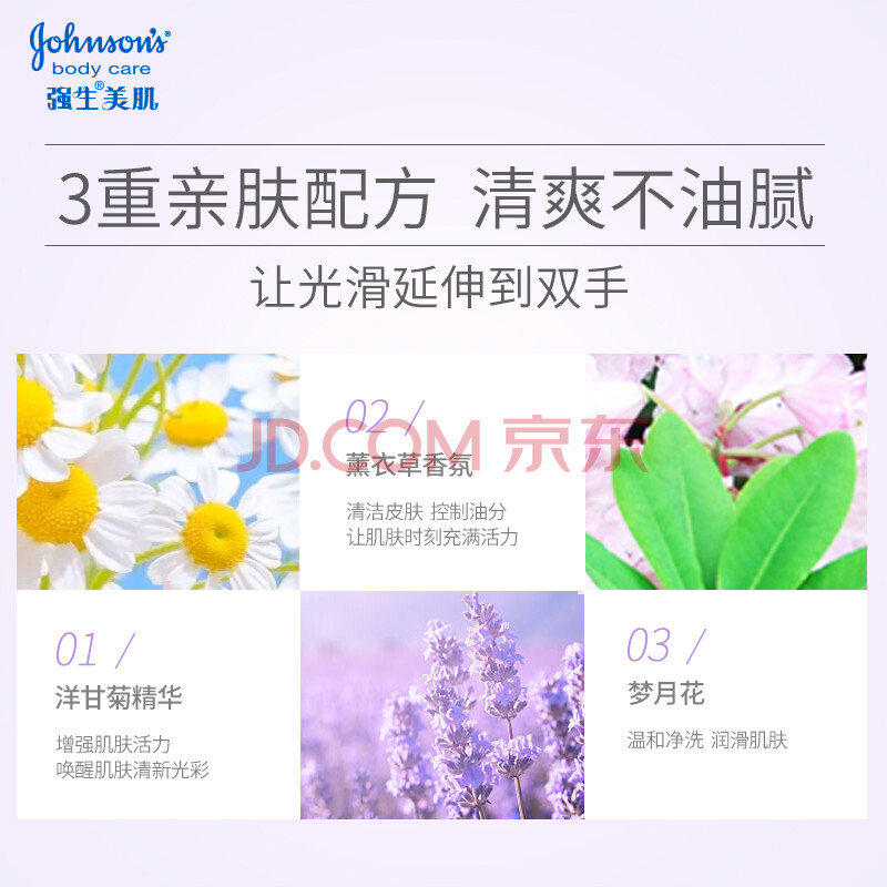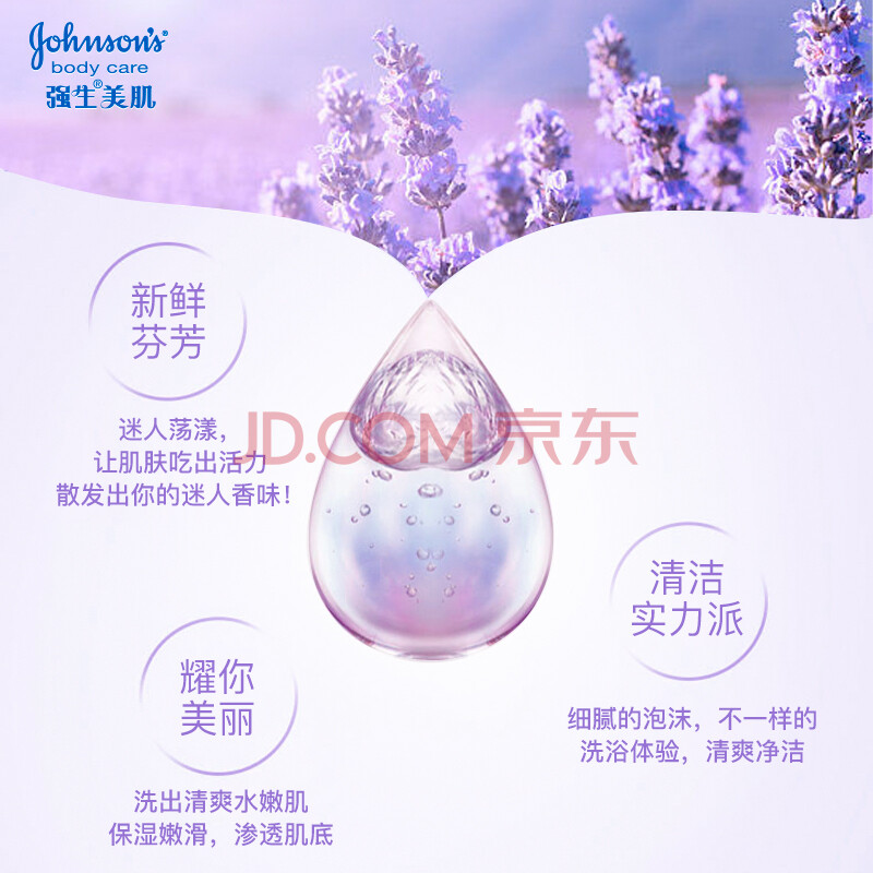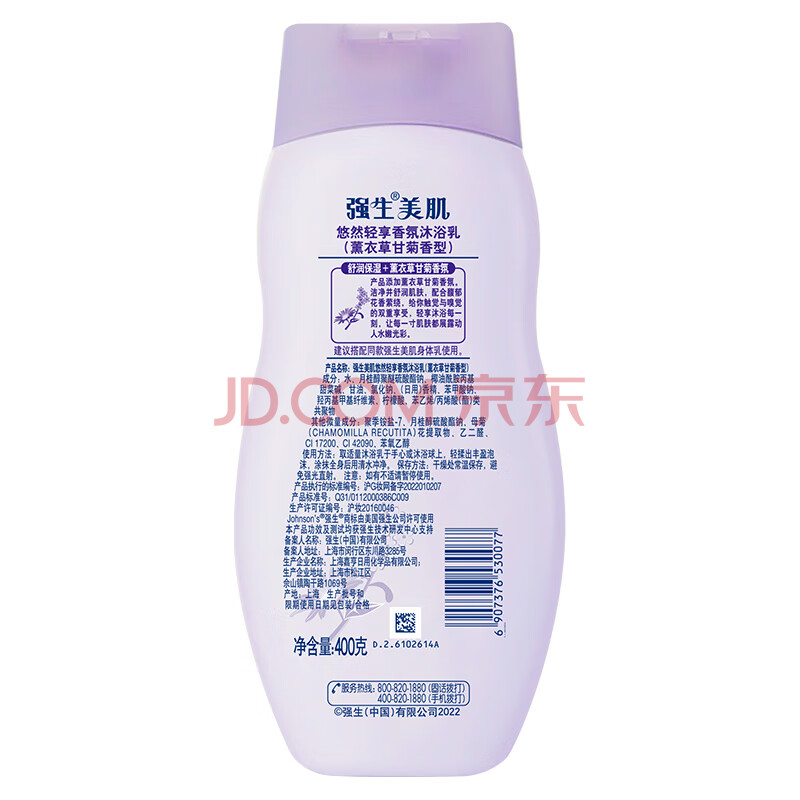 商品相册:强生美肌悠然舒缓沐浴乳 薰衣草甘菊舒缓 持久留香清爽沐浴露 400g第