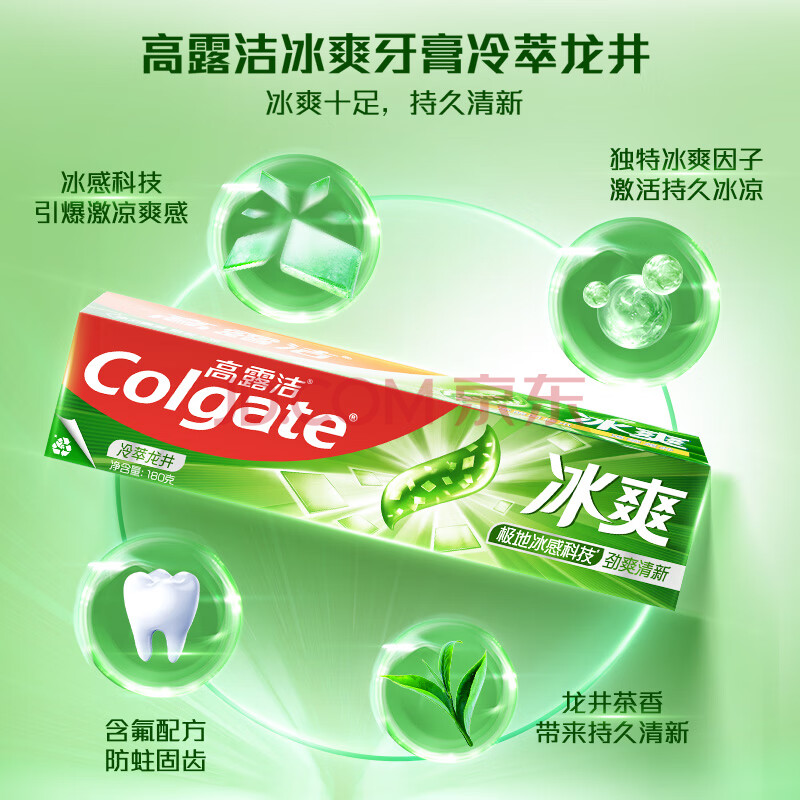 商品相册:高露洁(Colgate)冰爽龙井青柠牙膏180g 10倍持久清凉感清新口气 新老包装随机发货第