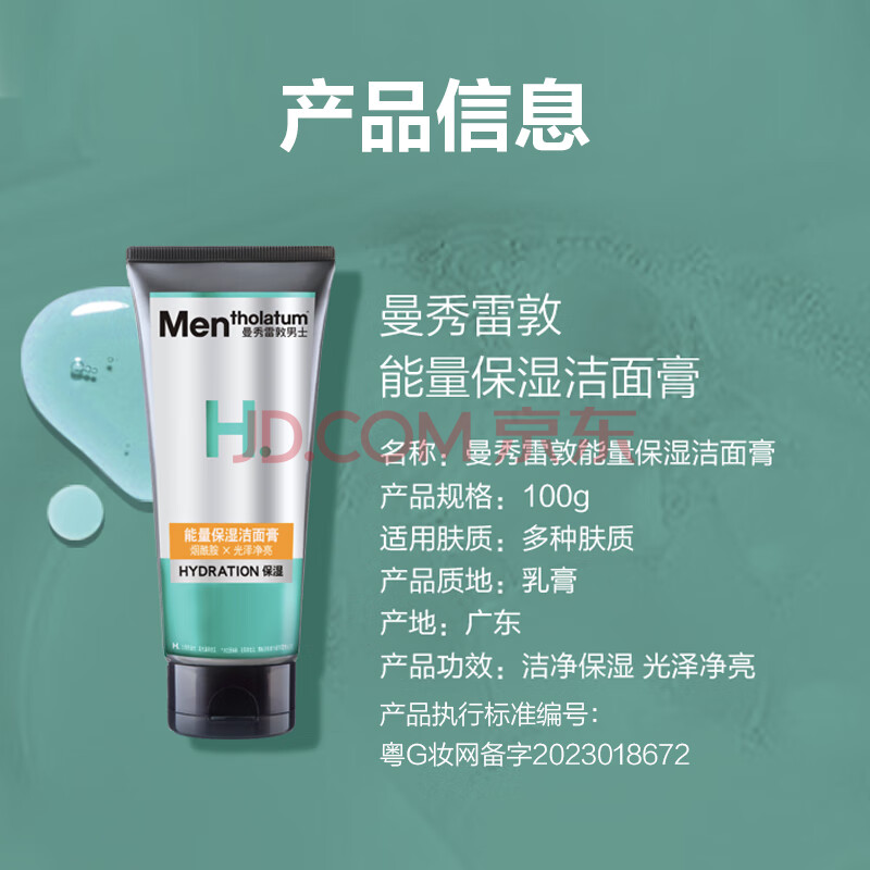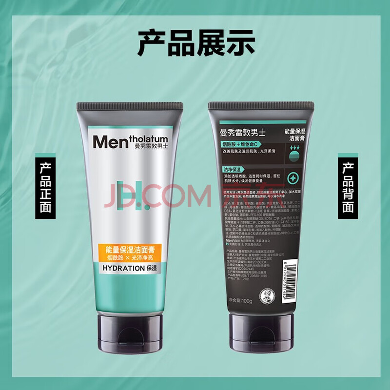 商品相册:曼秀雷敦男士能量保湿洁面膏100g 清洁提亮 保湿舒缓 温和洗面奶男烟酰胺第1张/共4