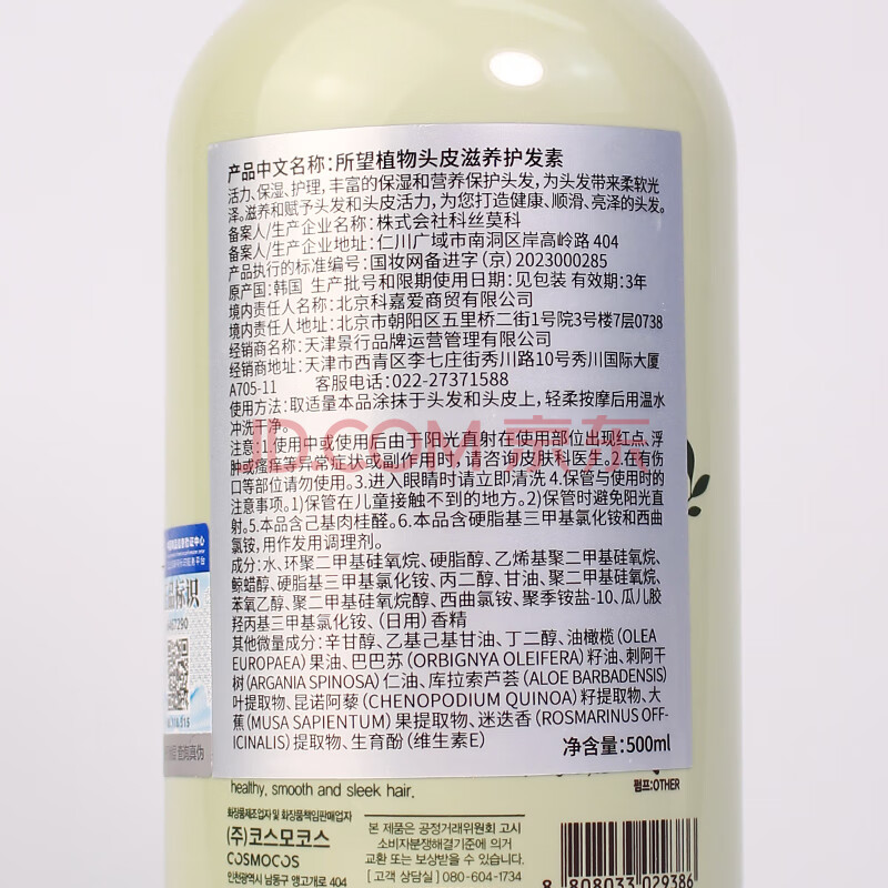 商品相册:所望植物头皮滋养护发素500ml 男女士烫发染发柔顺改善干枯毛躁亮泽第