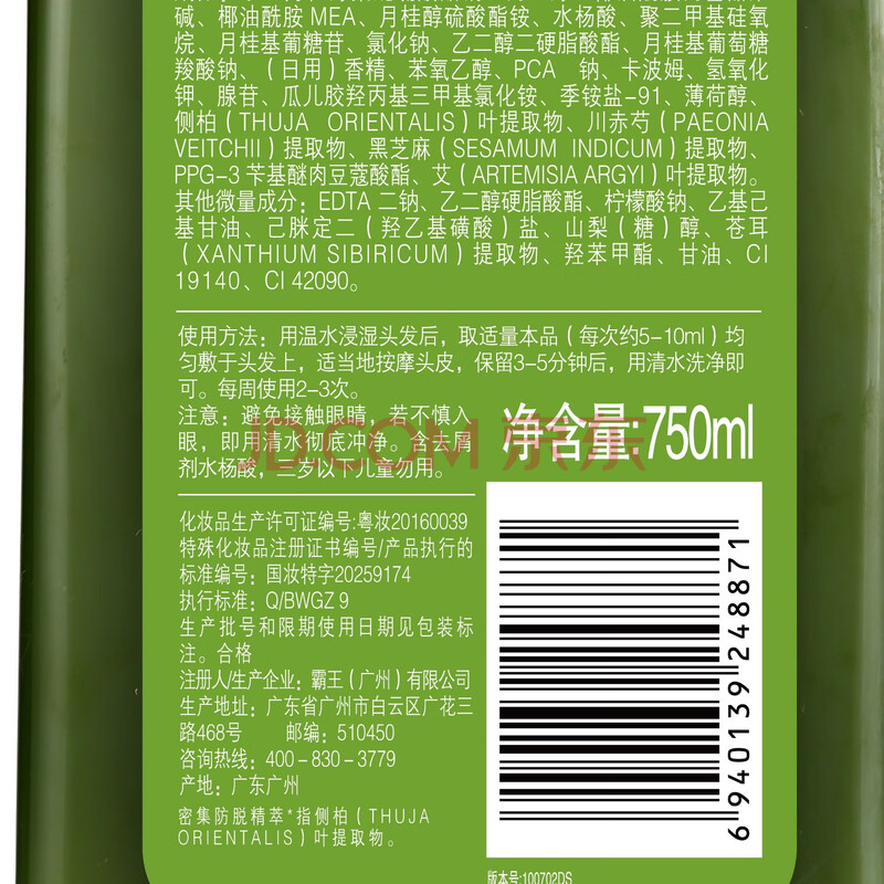 商品相册:霸王防脱发洗发水男女士控油去屑洗发液滋养强韧洗发露洗头膏750ml第