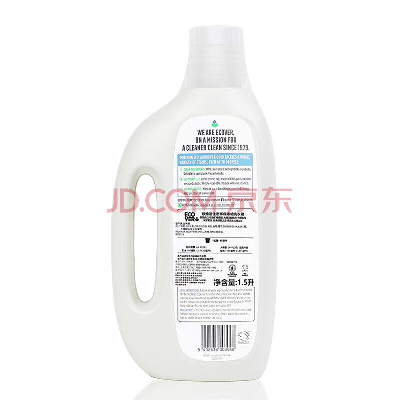 商品相册:ECOVER洗衣液 1.5L 原装进口 植物提取 不伤手 手洗机洗 深层洁净第
