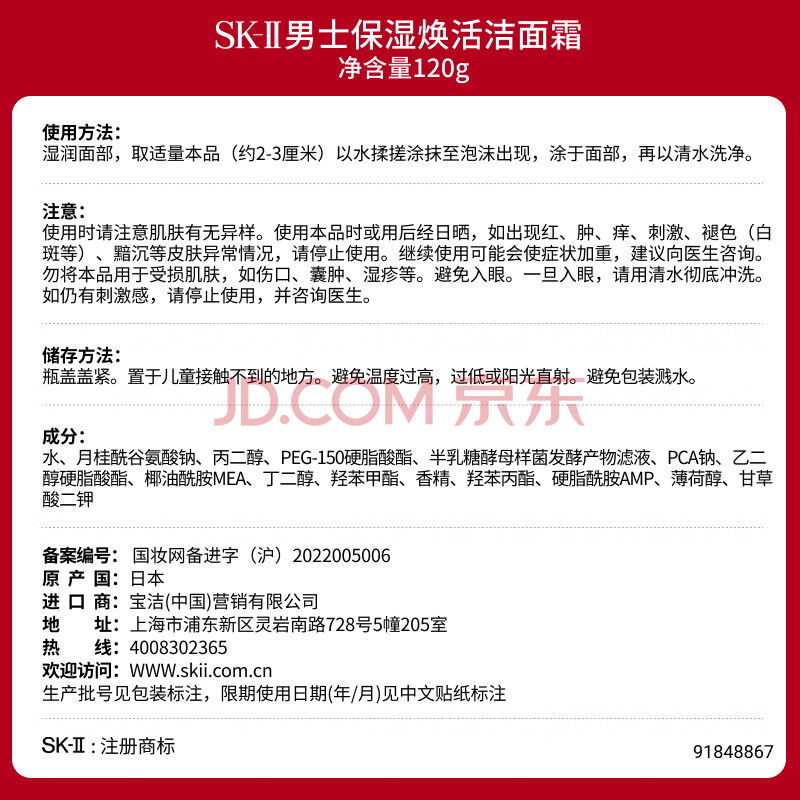 商品相册:SK-II男士洗面奶120g氨基酸洁面sk2护肤品套装化妆品控油套装生日礼物第