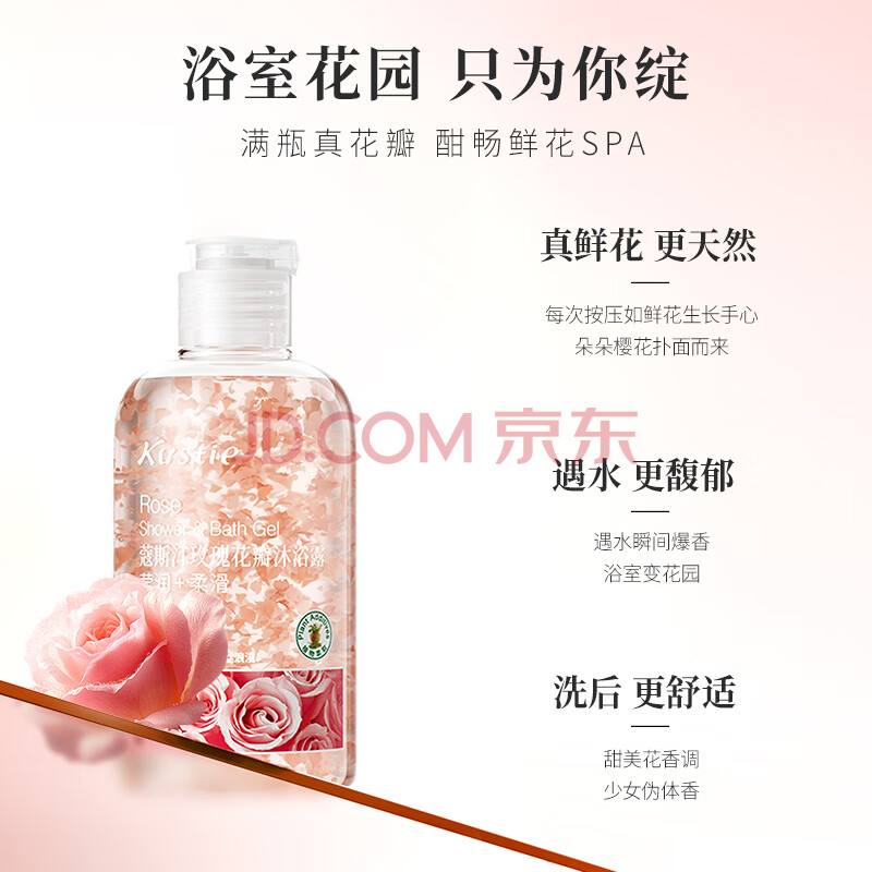 商品相册:蔻斯汀玫瑰花瓣沐浴露220g 男女持久留香浴液泡沫细腻清洁滋润旅行便携第