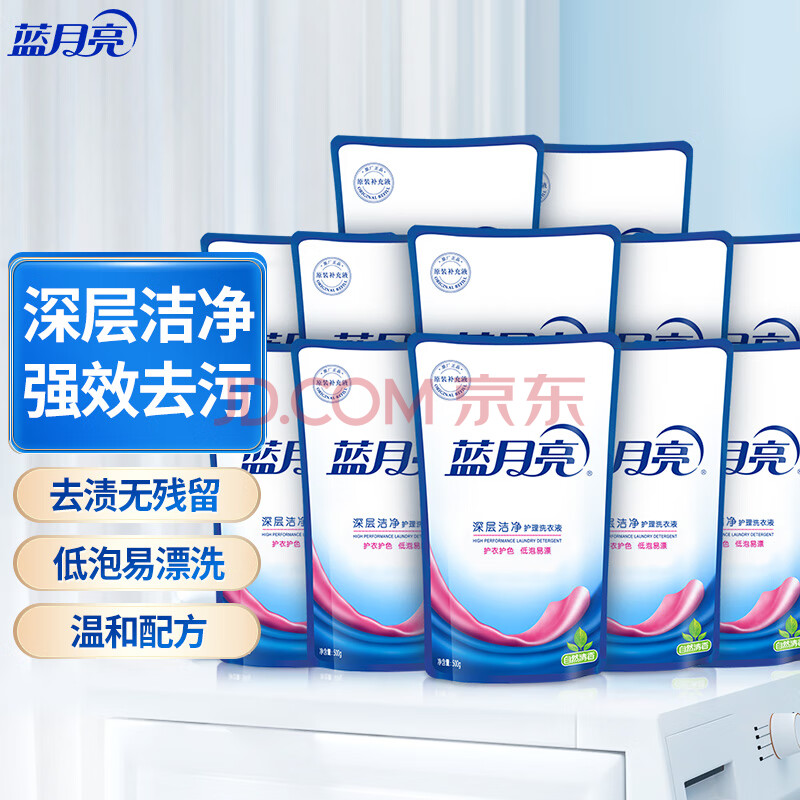 商品相册:蓝月亮深层洁净洗衣液袋装 自然清香 500g*12 补充装 高效除螨 强效去污第