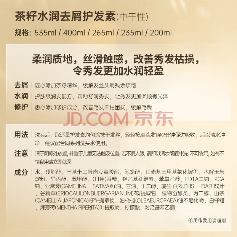 商品相册:滋源茶籽水润去屑护发素无硅油保湿柔顺修护润发乳中干性535ml第
