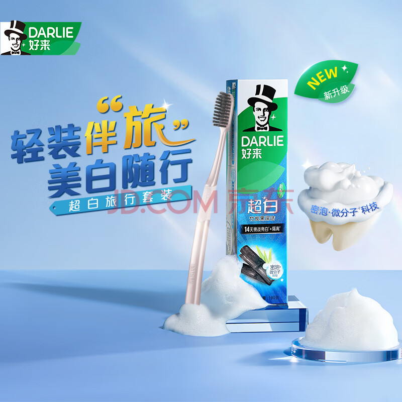 商品相册:DARLIE好来【白鹿推荐】超白旅便携行套装 美白 牙膏40g+螺旋深洁牙刷第