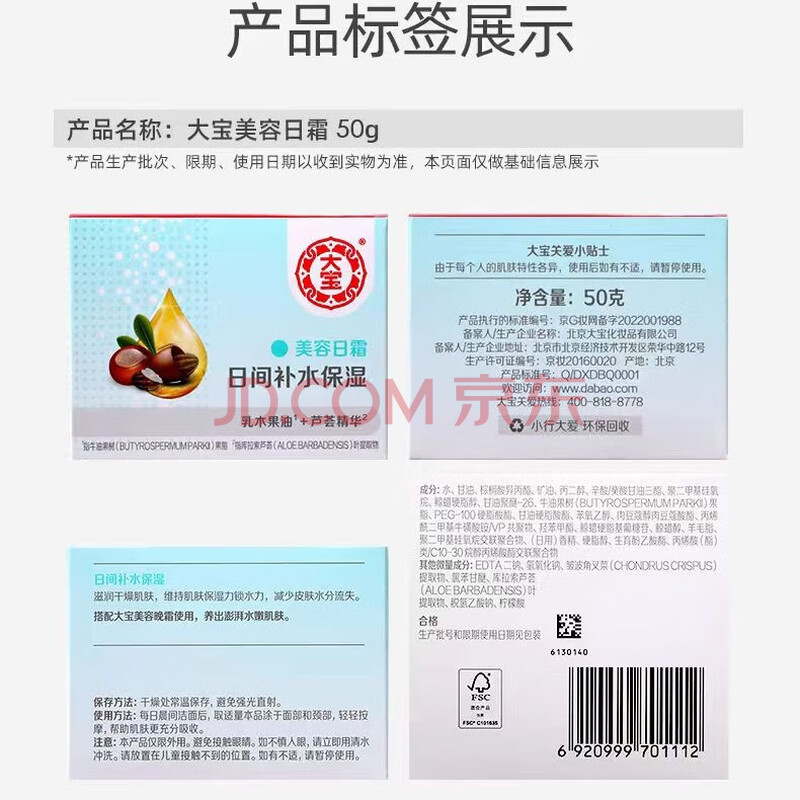 商品相册:大宝美容日霜50g补水保湿乳液面霜护肤品润肤改善皮肤粗糙第