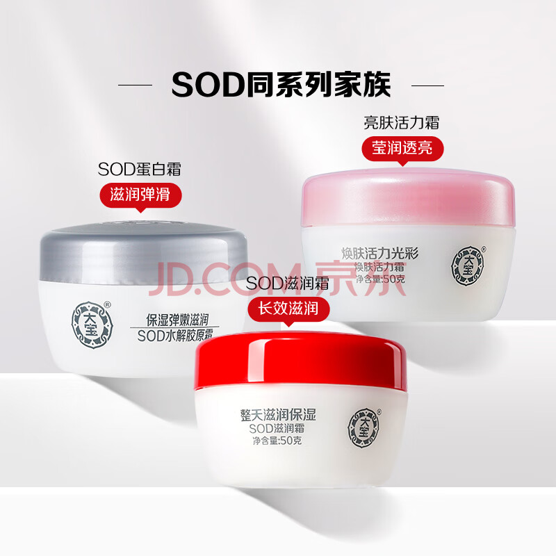 商品相册:大宝SOD水解胶原霜50g擦脸油乳液面霜男女士滋润紧致面部护肤第