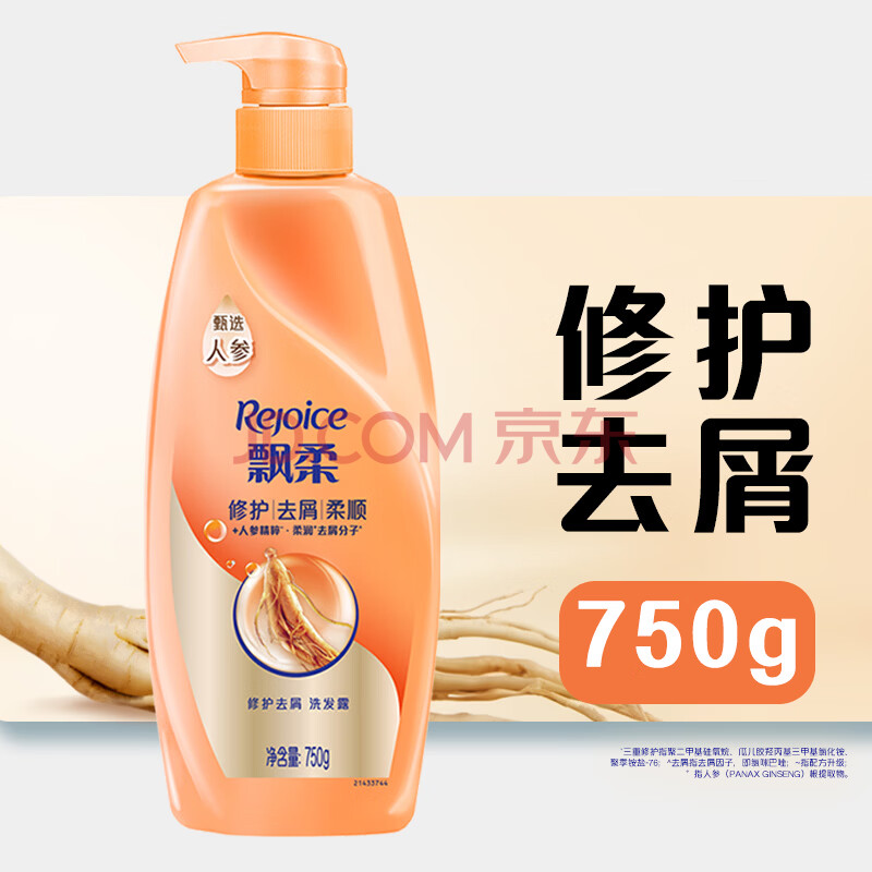 商品相册:飘柔人参修护去屑洗发水男士女士洗发露液洗头膏750g修护损伤柔顺第