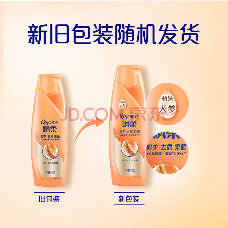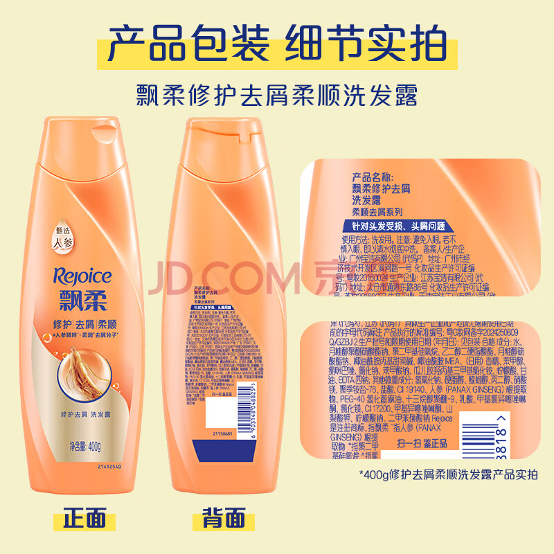 商品相册:飘柔人参修护去屑洗发水男士女士洗发露液洗头膏400g修护损伤柔顺第