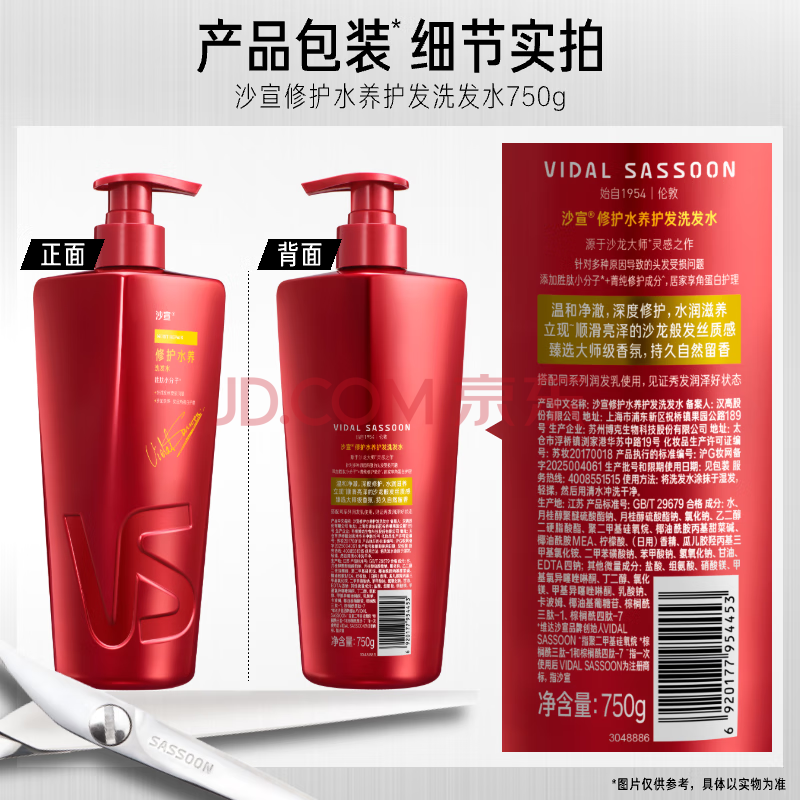 商品相册:沙宣大红瓶修护水养洗发水750g深层修护发丝抚平毛躁洗头膏男女洗发露第