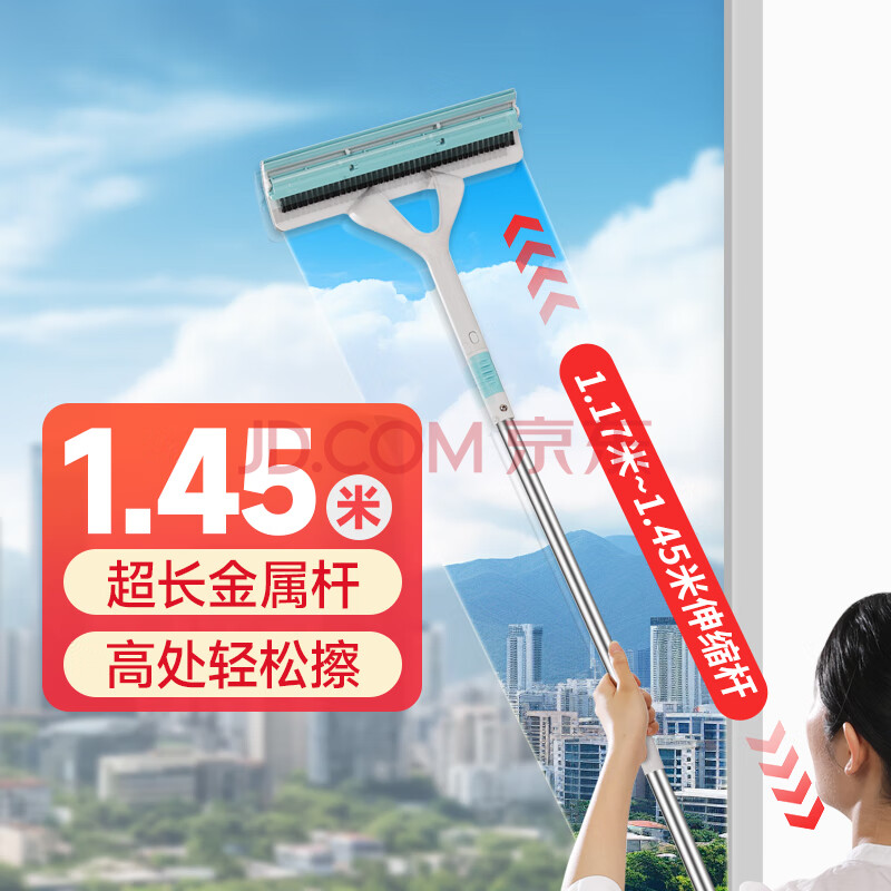 商品相册:美丽雅擦玻璃神器1.45米家政高层窗外专用伸缩加长杆双面刮擦刷纱窗第1张/共8