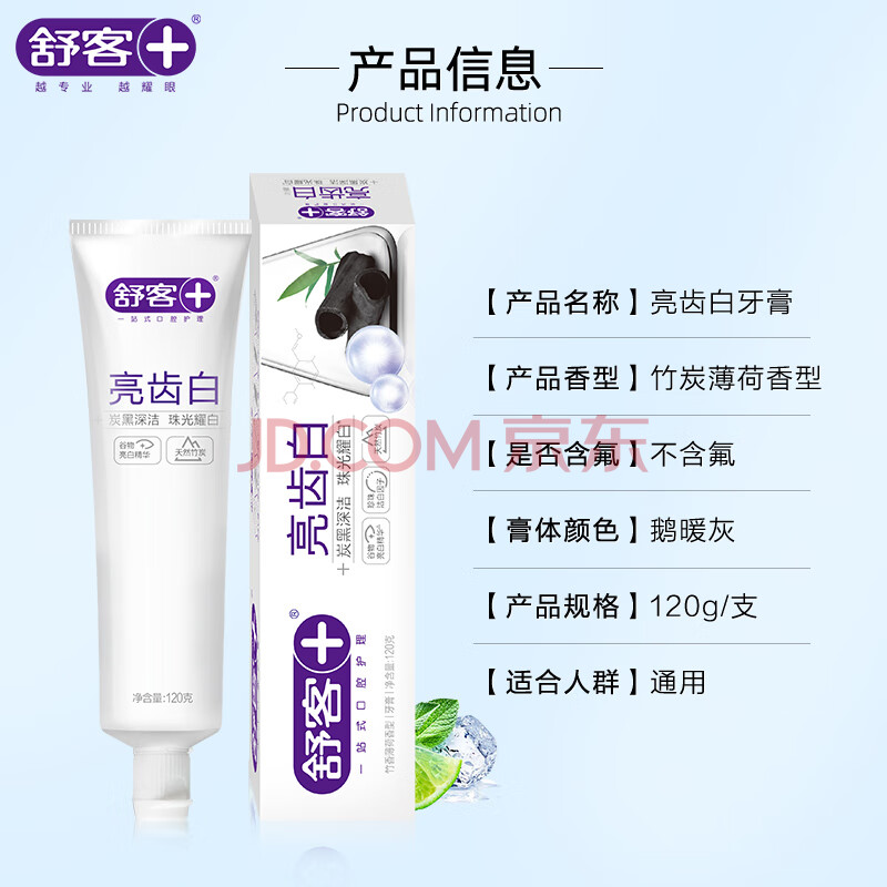 商品相册:舒客【肖战同款】亮齿白牙膏 美白去黄去渍清新口气 120g新老包装随机第