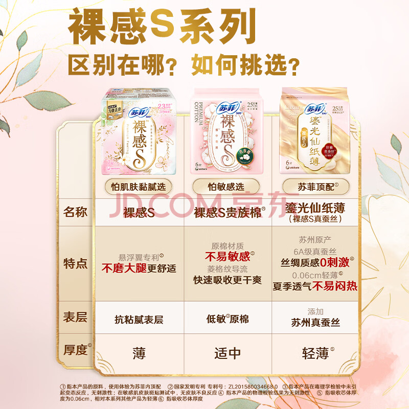 商品相册:苏菲【婴儿级标准】裸感S极上日用卫生巾23cm14片透气保护姨妈巾自营第
