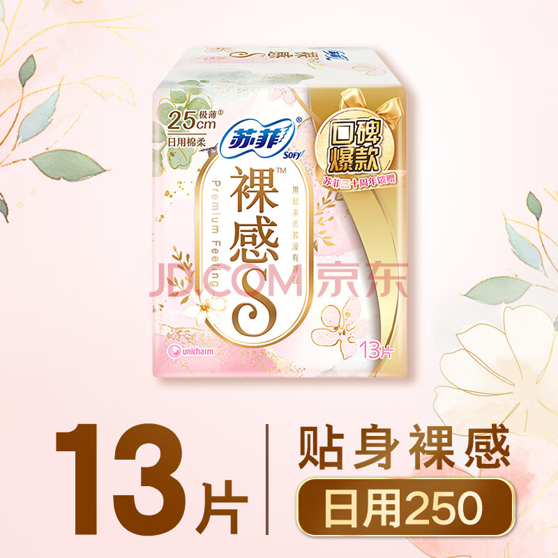 商品相册:苏菲【婴儿级标准】裸感S极上日用卫生巾25cm13片透气保护姨妈巾自营第