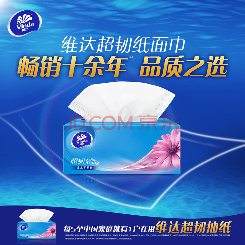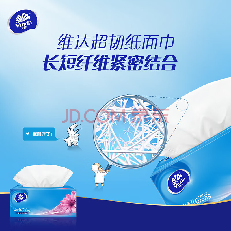 商品相册:维达(Vinda)抽纸 超韧3层130抽*3包L码 湿水不易破 盒抽 卫生纸 纸巾 餐巾纸 第