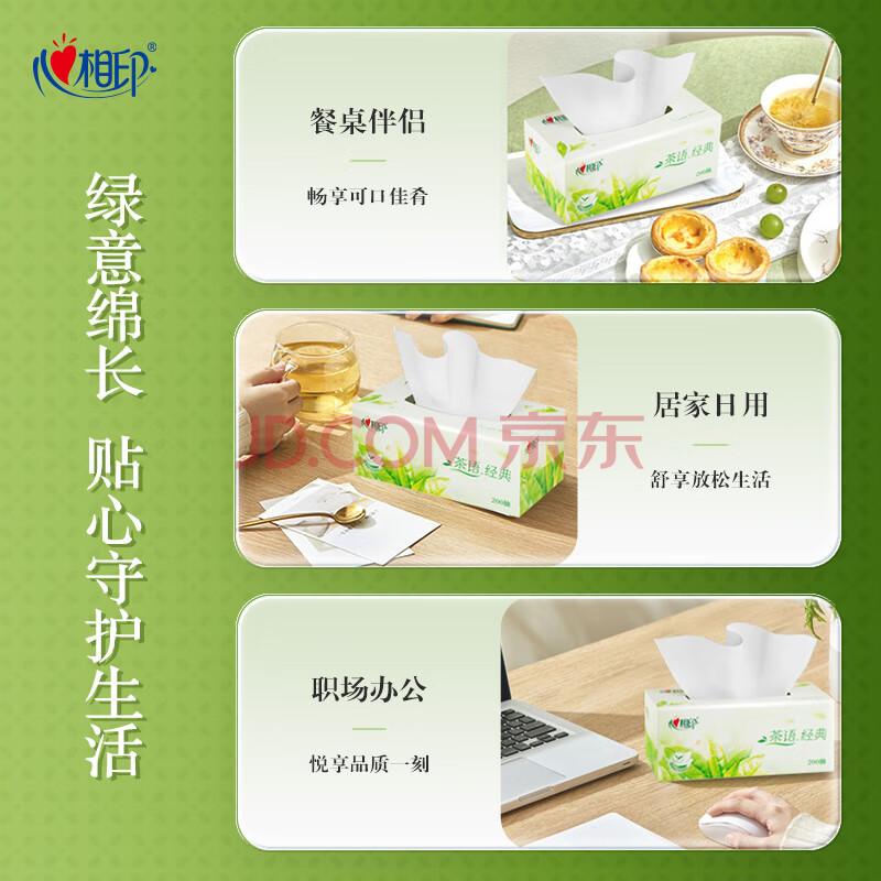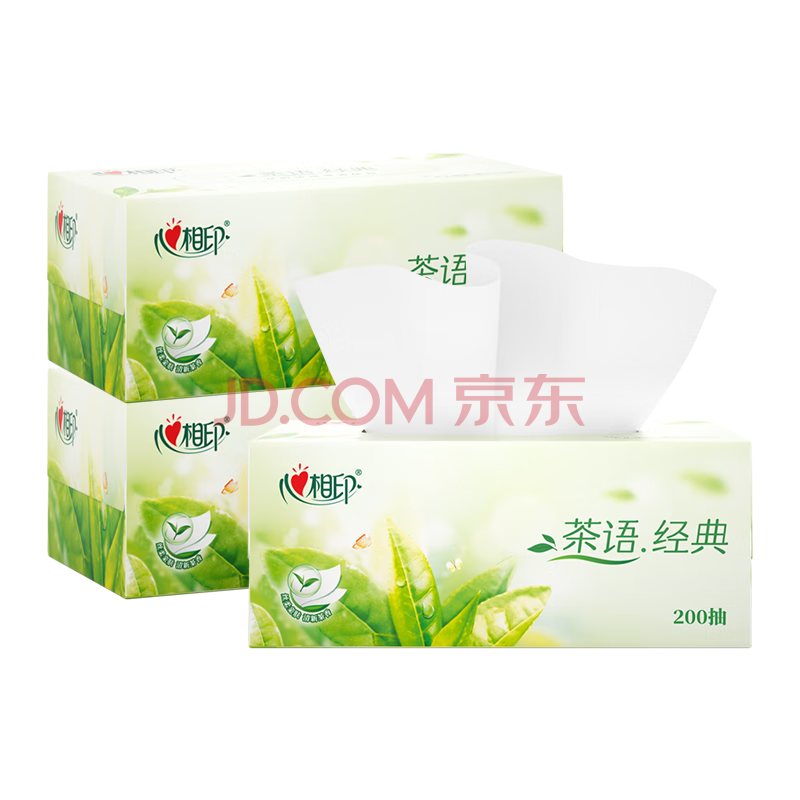 商品相册:心相印抽纸/盒抽 茶语经典2层200抽*3盒纸巾 商务 会议 办公面巾纸 H200第