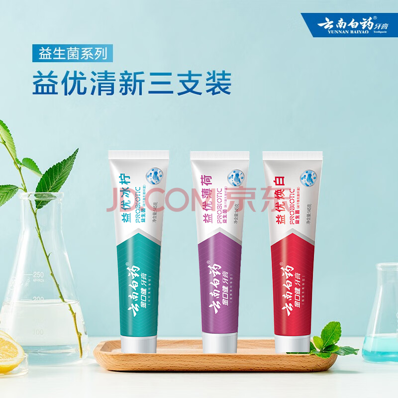 商品相册:云南白药牙膏益生菌系列套装 清新口气祛除口腔异味冰柠薄荷香型105g*3第