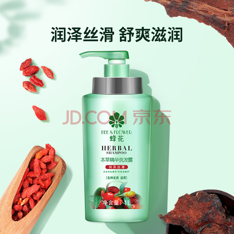 商品相册:蜂花 本草精华洗发水1L润泽丝滑洗发露滋养柔顺滑溜溜男女士洗头膏第