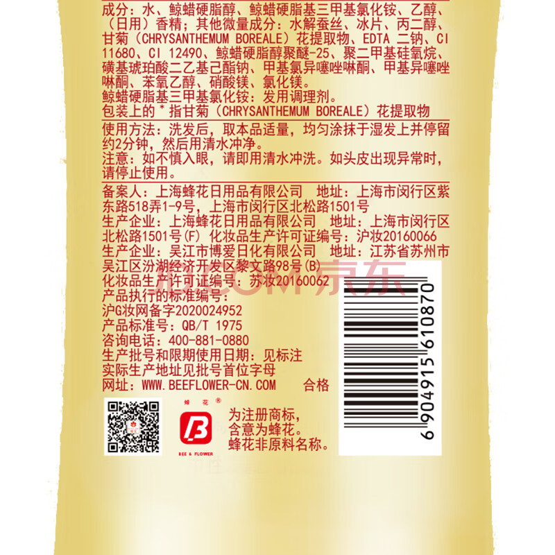 商品相册:蜂花 本草精华顺爽护发素820ml 焗油多效修护理柔顺分叉第