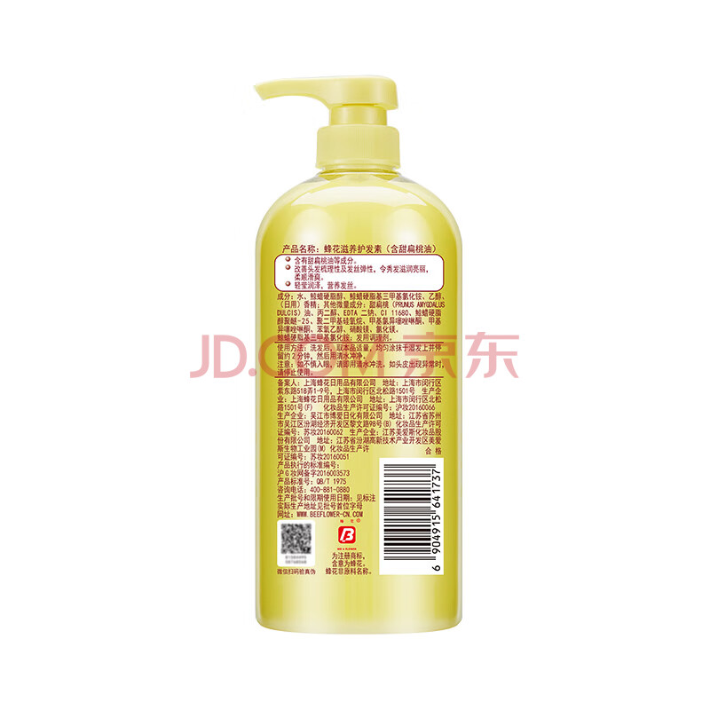 商品相册:蜂花 滋养护发素润发乳1L 杏仁精华营养润滑改善毛躁干枯烫染受损第