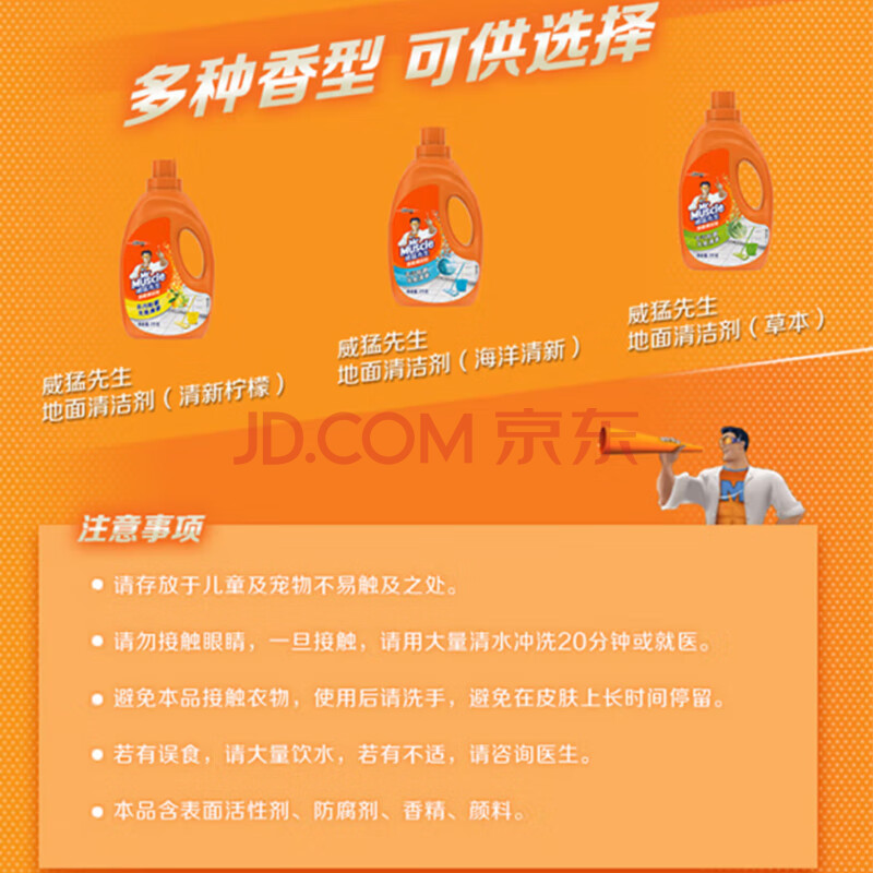 商品相册:威猛先生(Mr Muscle) 地板清洁剂 2kg 柠檬香 地板砖清洁剂 瓷砖除菌除垢 浓缩配方 第