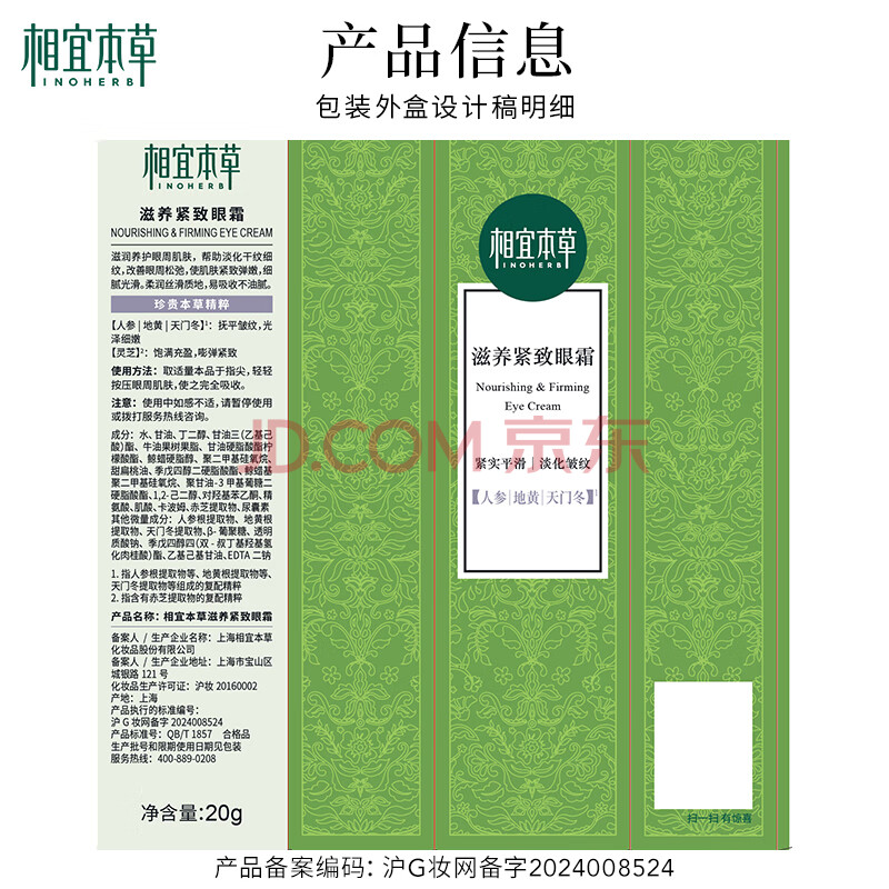商品相册:相宜本草 滋养紧致眼霜20g 眼部精华淡纹抗皱去眼袋护肤品第1张/共7