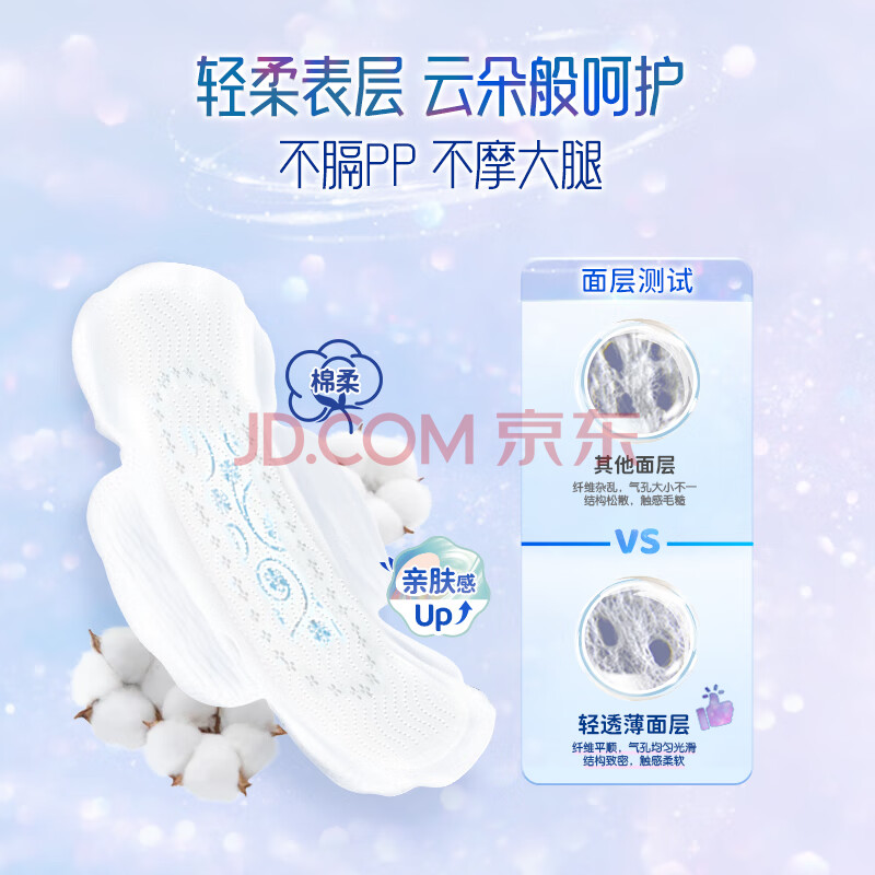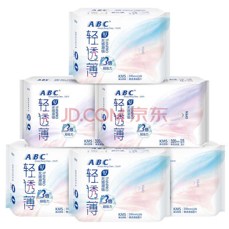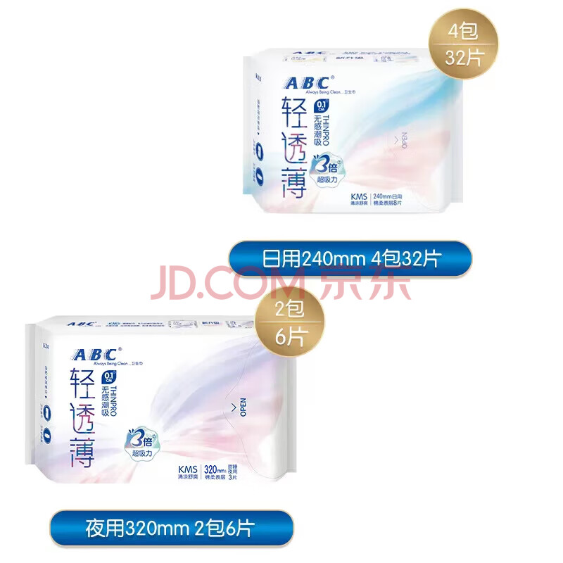 商品相册:ABCKMS轻透薄健康配方超薄无感日夜卫生巾套装京东自营6包38片第