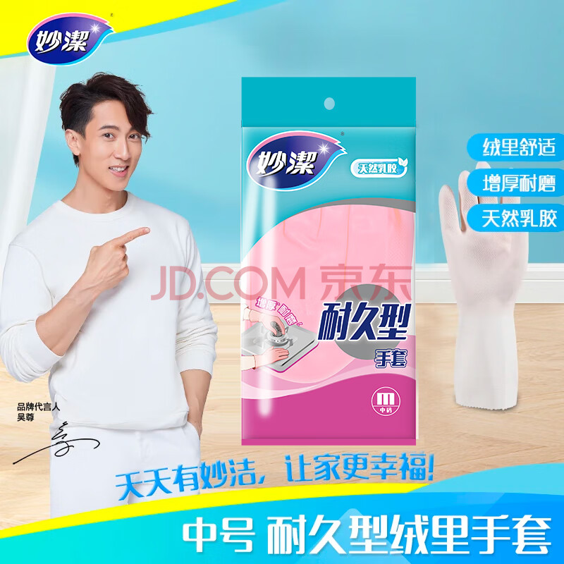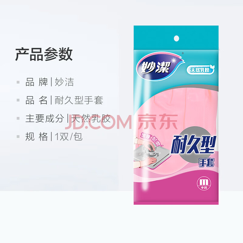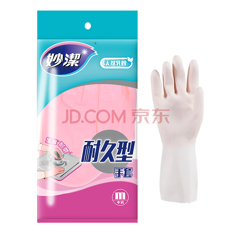 商品相册:妙洁耐久型手套 天然橡胶 1双装 中号 清洁洗衣洗碗家务做饭手套第