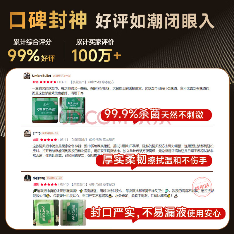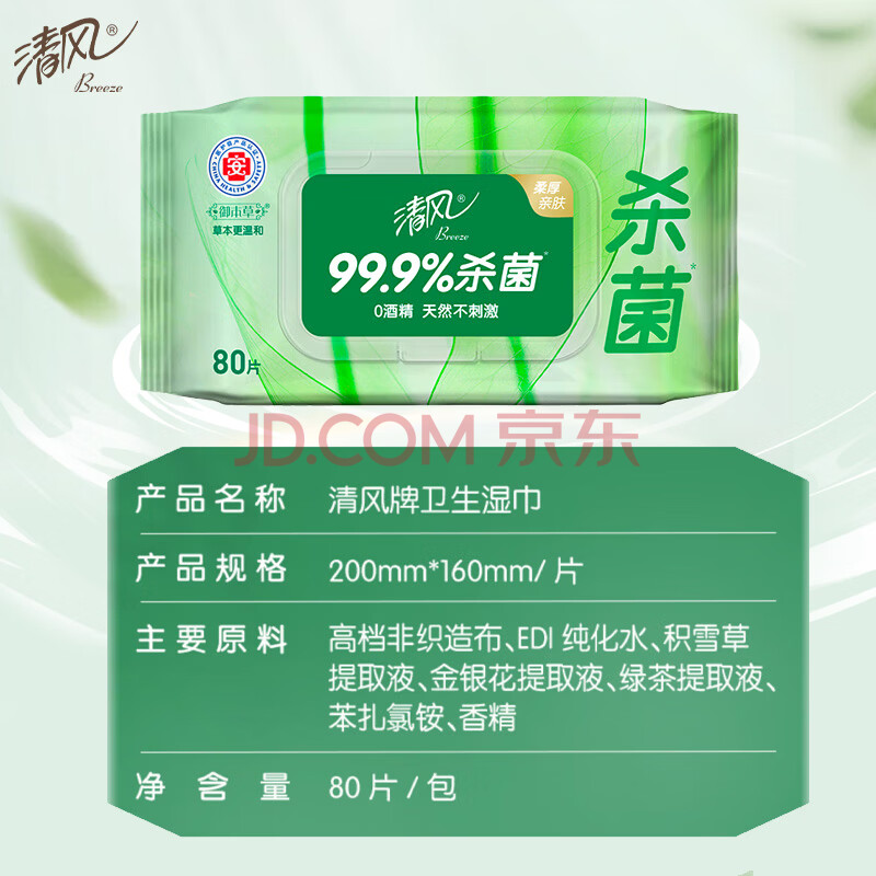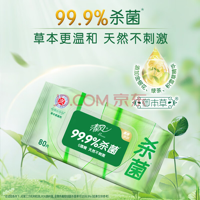 商品相册:清风【李昀锐同款】御本草杀菌湿巾80片单包 不含酒精 家用大包湿纸巾第