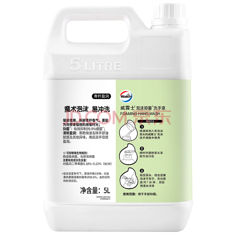 商品相册:威露士泡沫洗手液补充装5L 青柠盈润抑菌消毒家庭酒店餐厅10斤灭甲流感第
