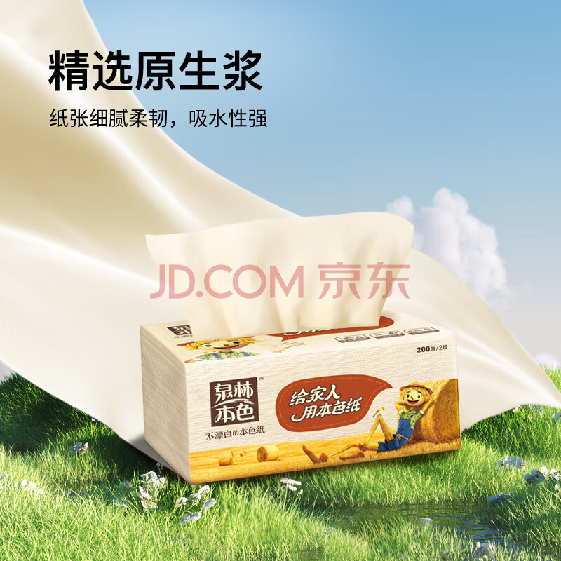 商品相册:泉林本色抽纸200抽*15包经典爆款整箱批发加量家庭耐用餐巾纸面巾纸卫生纸第