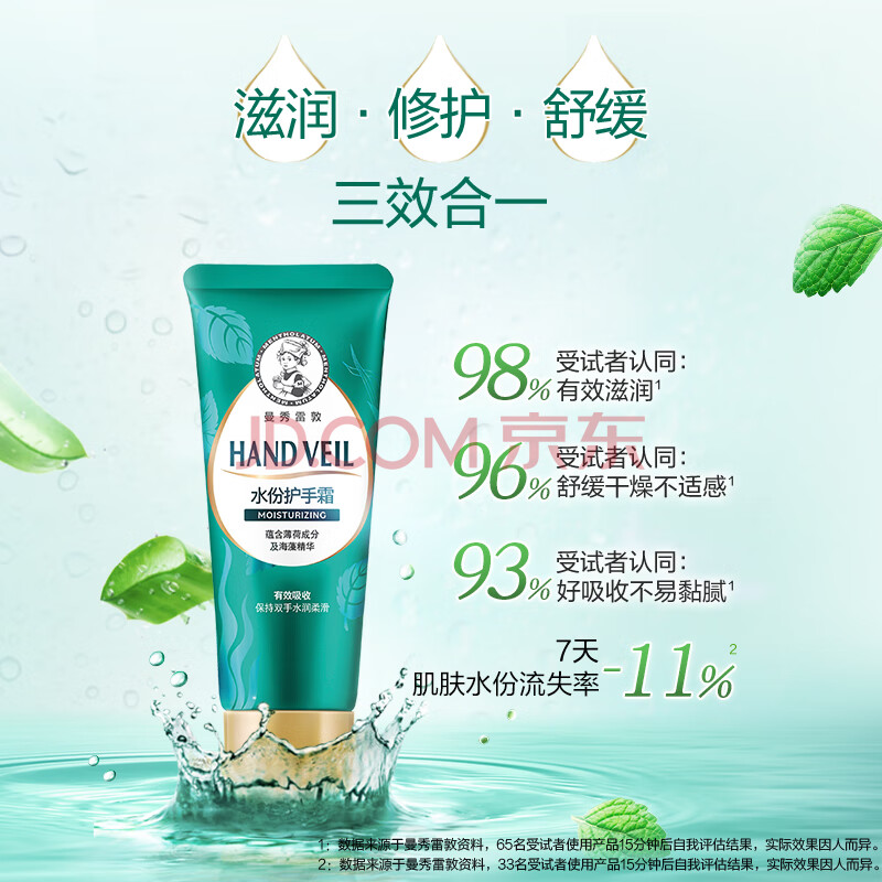 商品相册:曼秀雷敦水份护手霜50g长效保湿护甲滋润手霜男女士手膜防干裂嫩肤补水保第